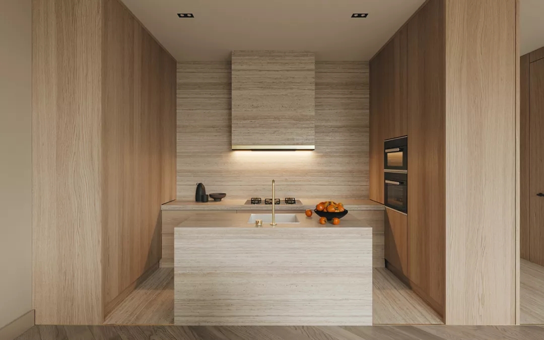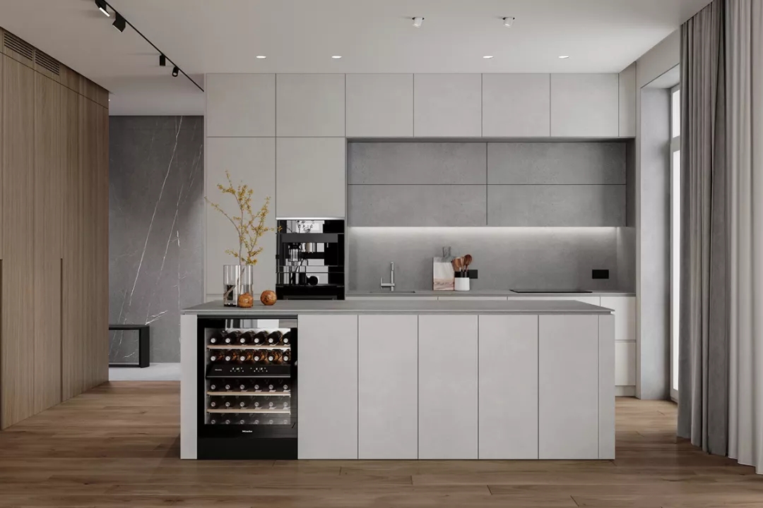 厨房的壁面以方便、不易受污、耐水、耐火、抗热、表面柔软,又具有视觉效果者为佳。