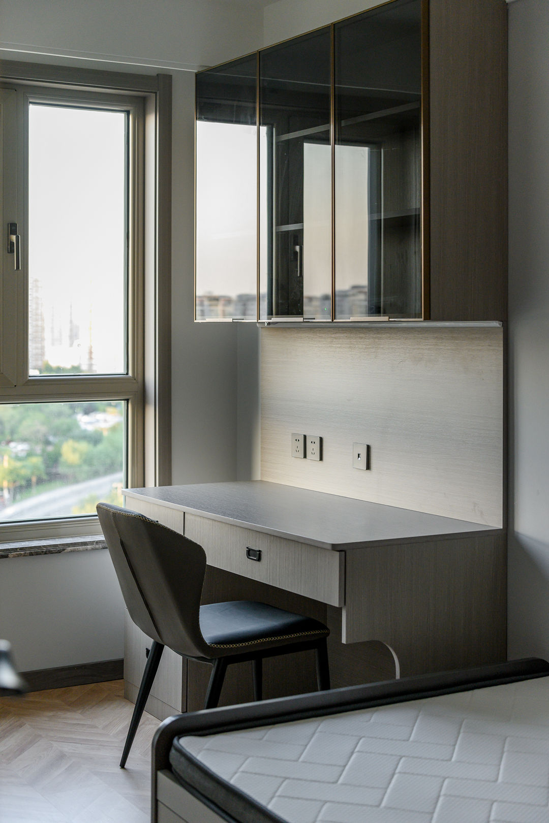温馨的单人房设计,采用较多的木质家具和布艺装饰,满足当代年轻人追求简约风格的需求,同时也尽可能多的扩大收纳空间。