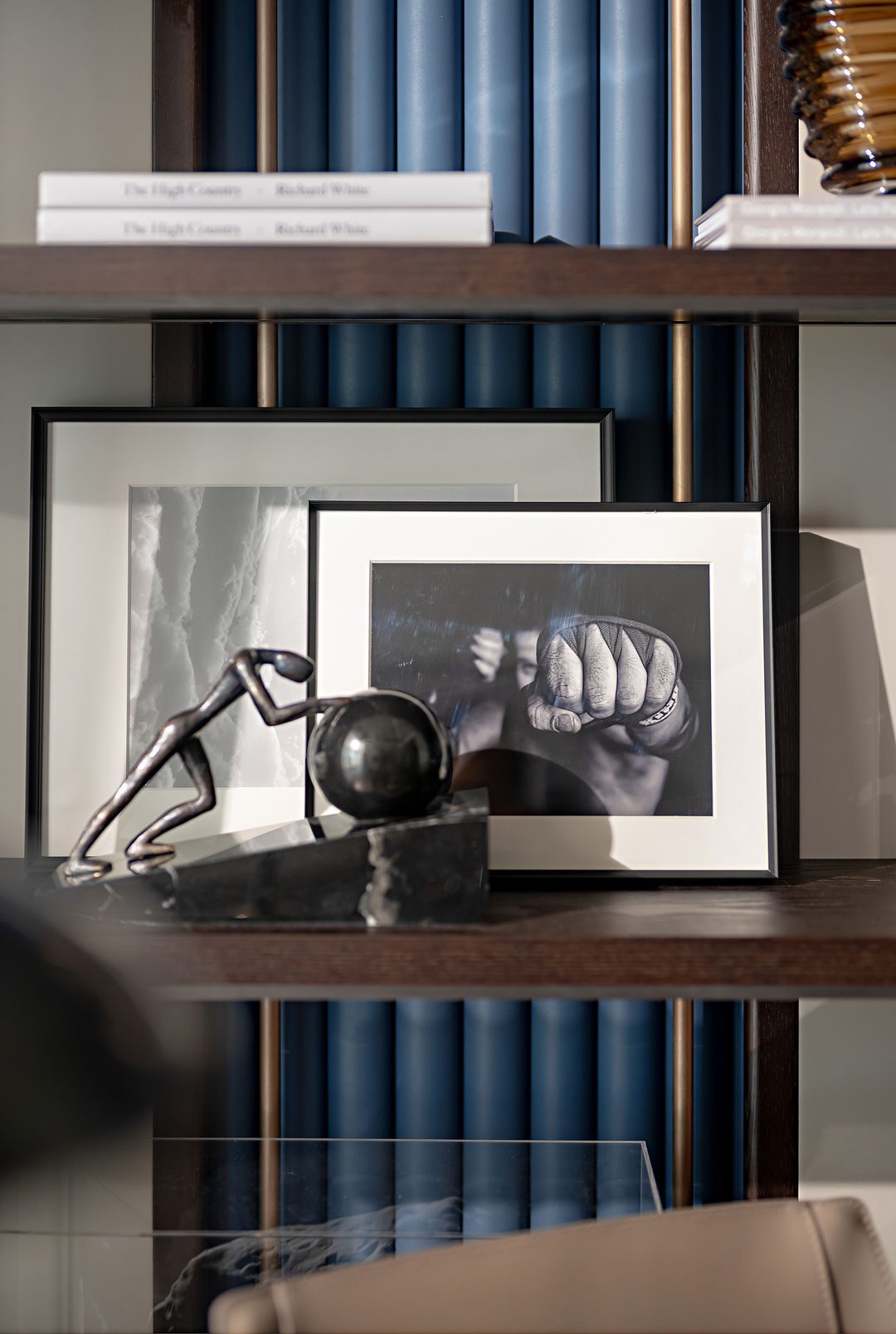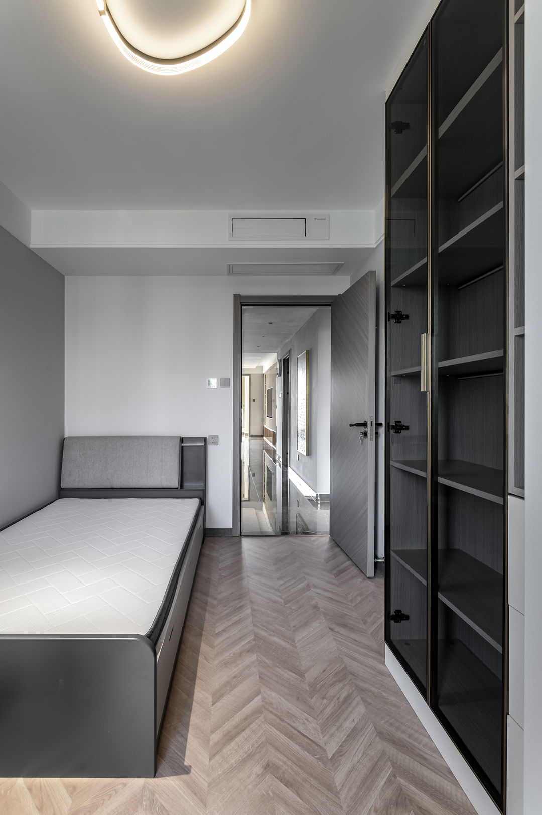 黑白色为主,采用极简风,光影交错的设计风格,整体为冷色调,体现当下一种时尚简约的装修风格
