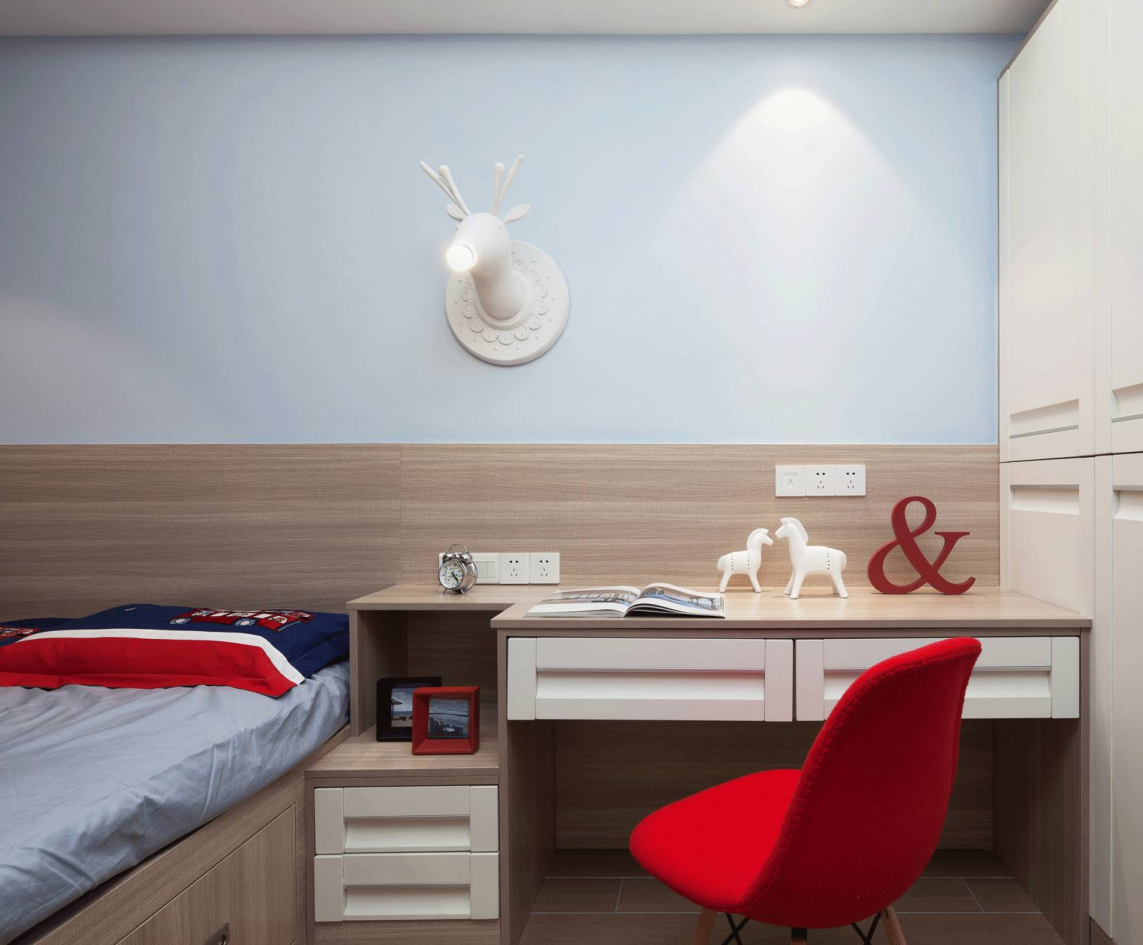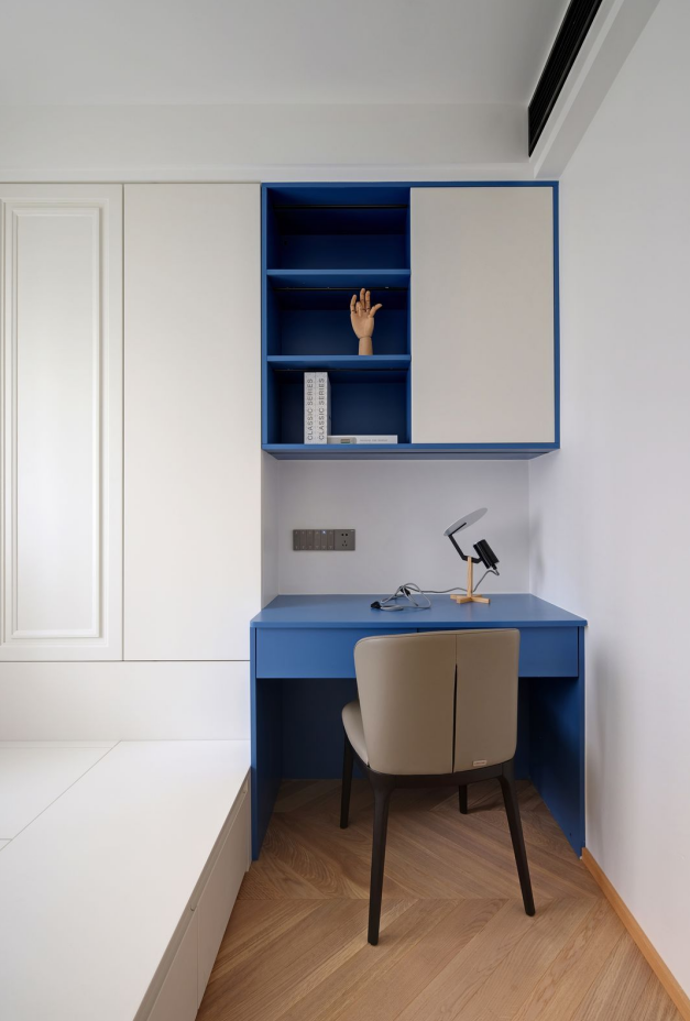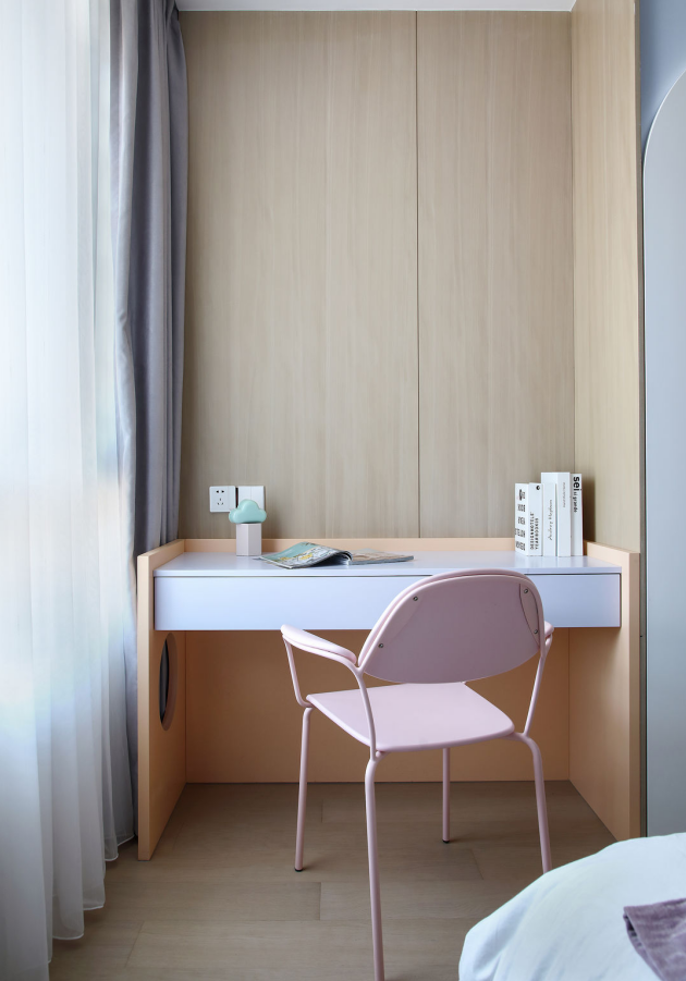 小户型的儿童房,如同麻雀虽小,却五脏俱全,满足日常所需功能,而且比改之前还多了书桌功能,这个是小孩房不可或缺的。