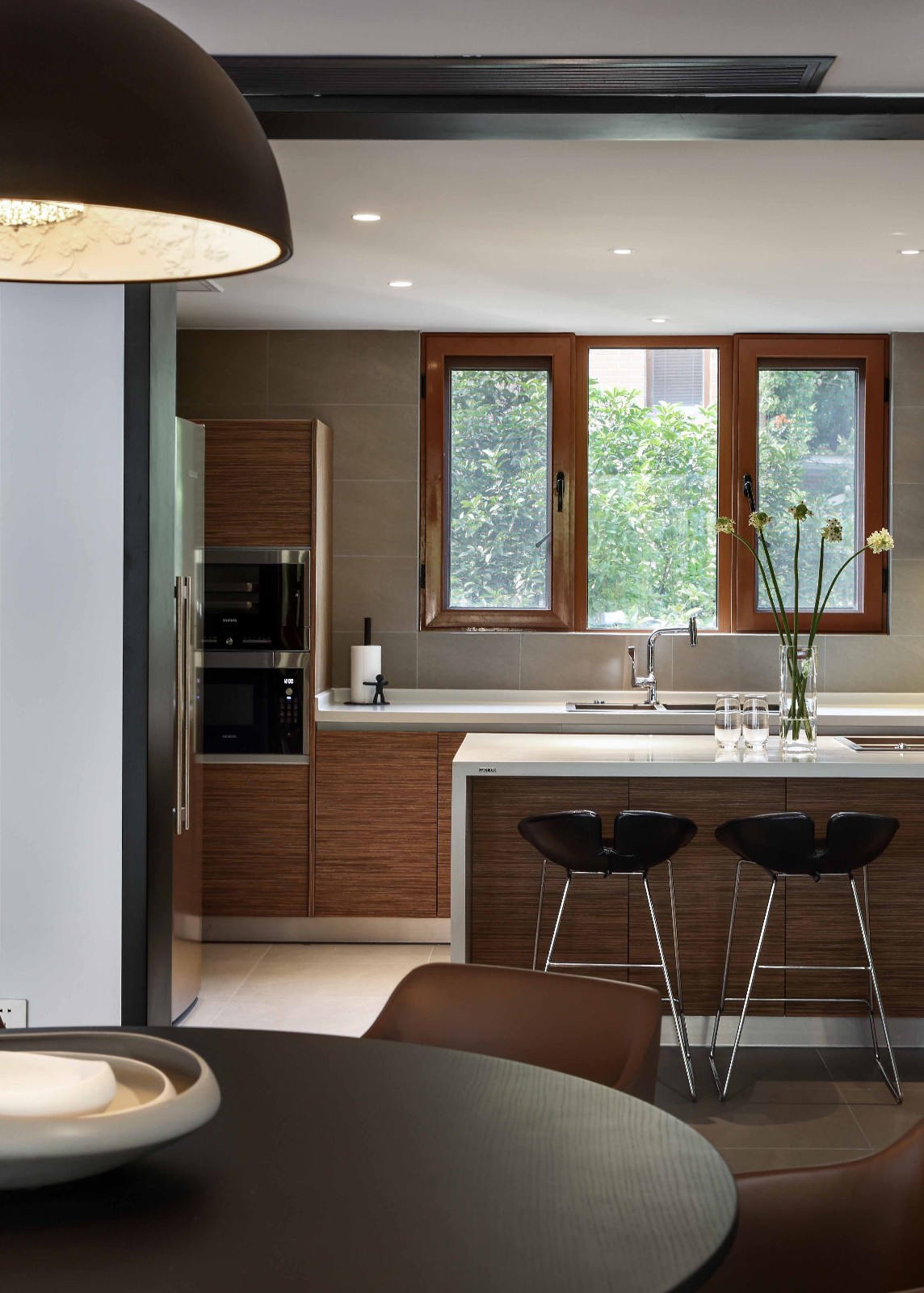室内的主色调以白色为主,局部使用高级黑色块与原木色作为点缀。整个内部空间通过挑高的形式来呈现增强视觉效果。 #家居灵感#