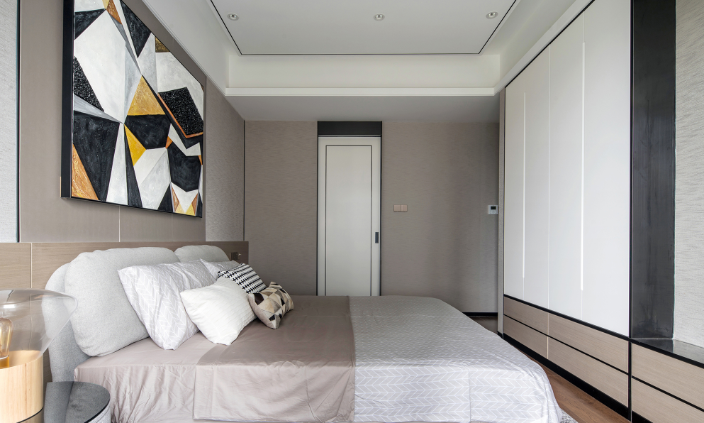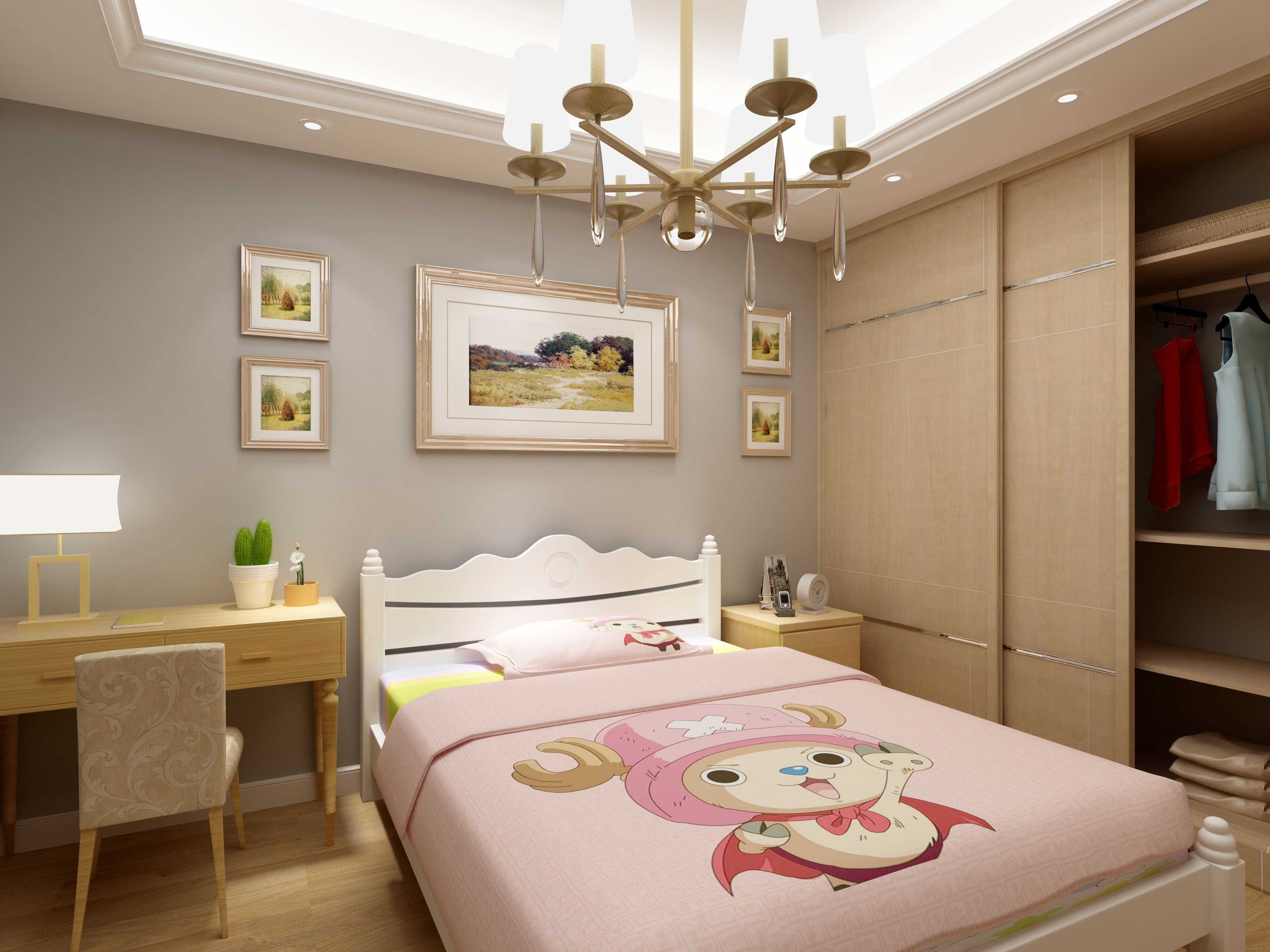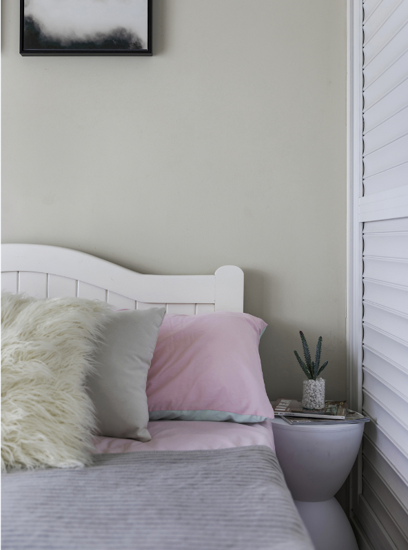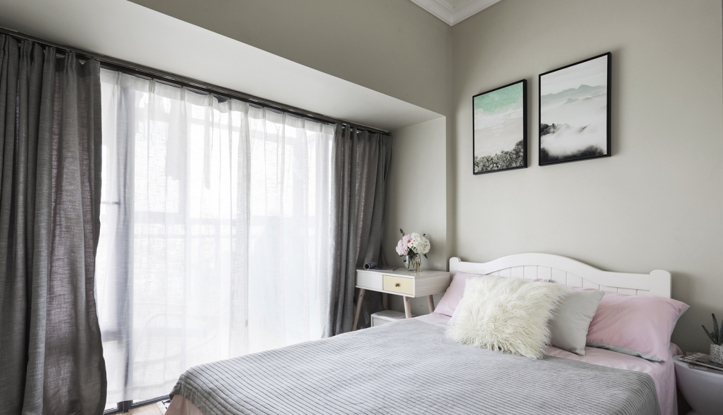 女孩房采用色块拼色的设计,浅灰搭配莫兰迪粉,带灰色调的粉形成和谐的视觉,看着就生动活泼。