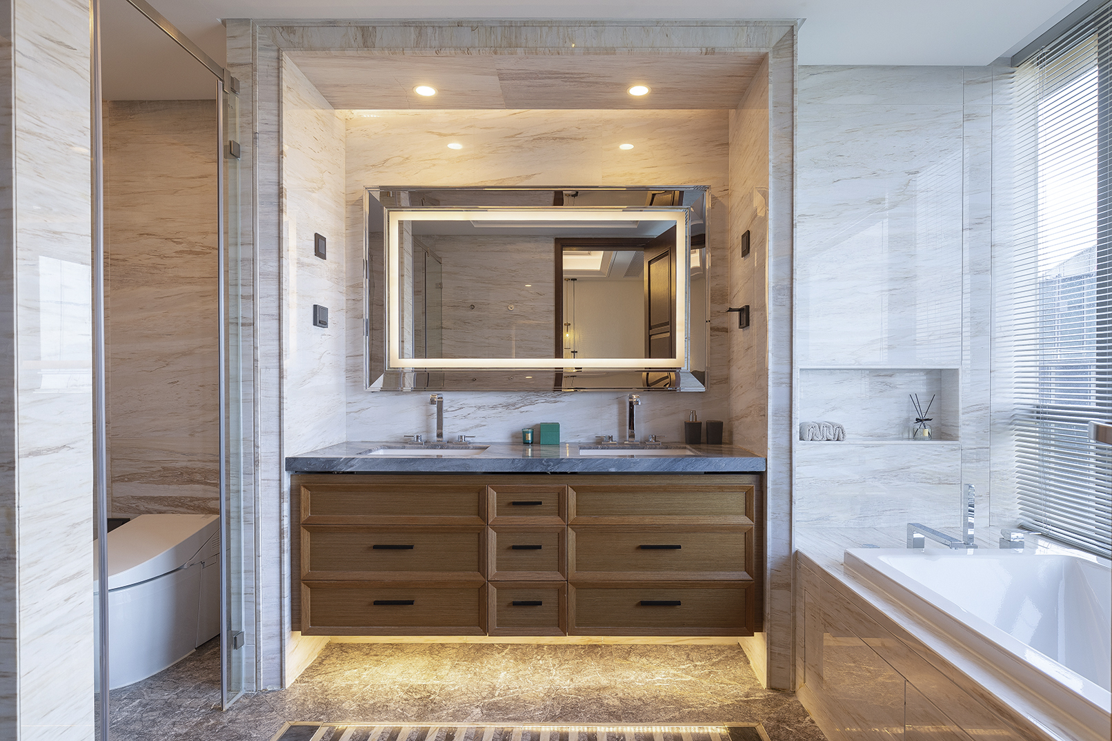 一般来说,为了让卫生间更加实用,我们在设计时需要遵循干湿分离的原理,将洗漱区、马桶区与淋浴区做好隔断,让各个功能区之间互不影响。针对不同卫生间的干湿分离也有不同方式。