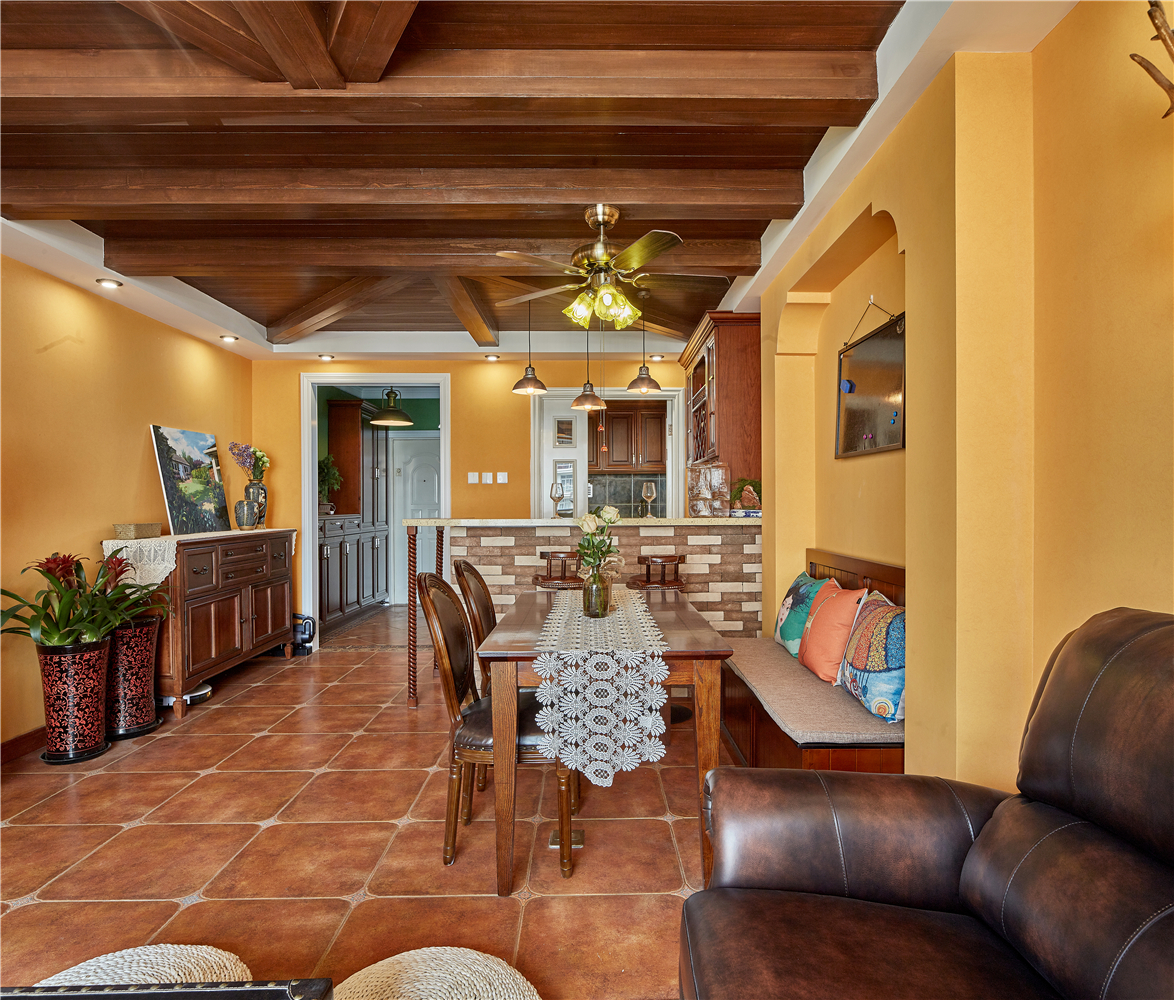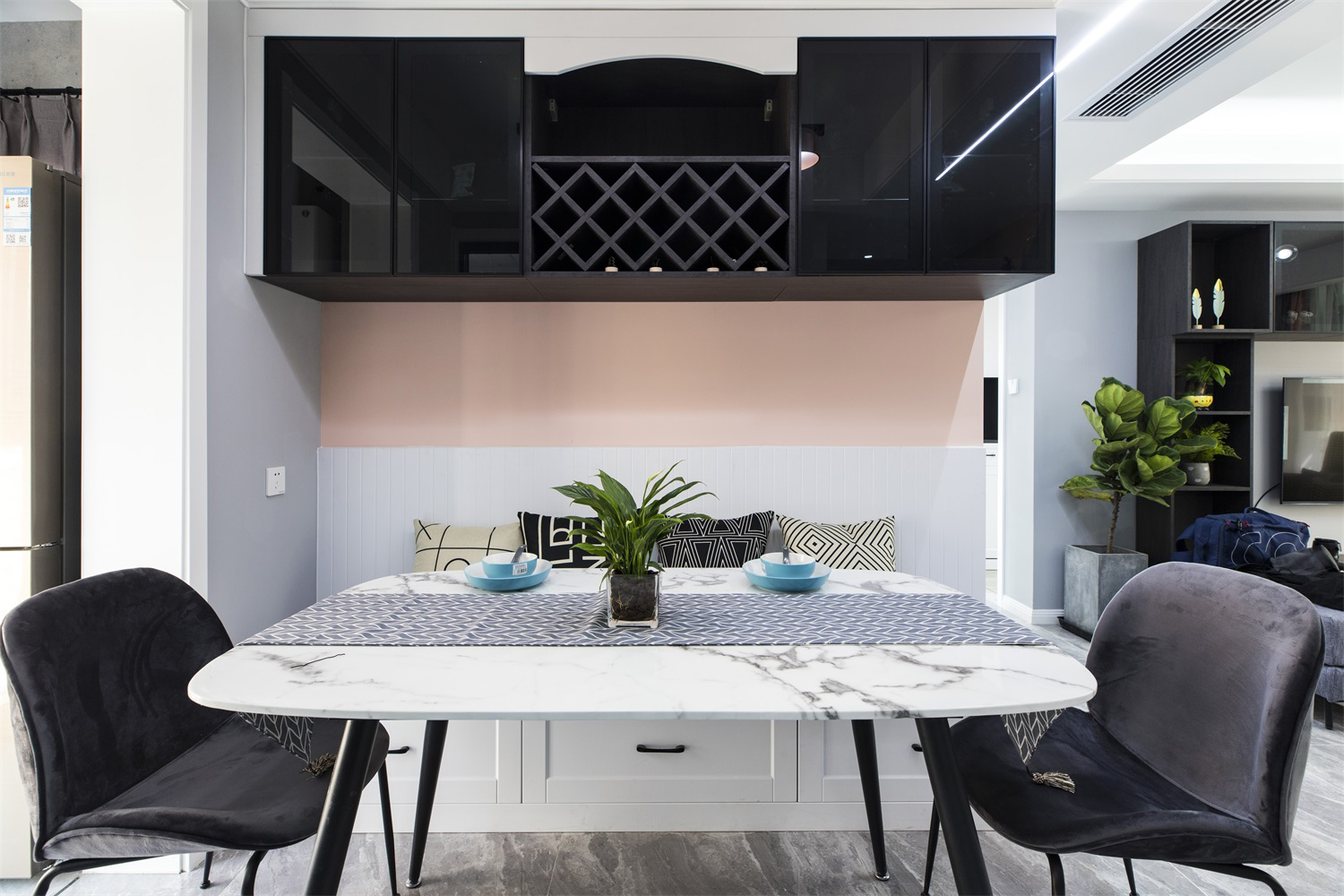 客餐厅一体化设计的餐厅格局,合理规划利用空间,同时增加家庭间的互动,让家庭关系更为亲密,同时空间格局更显宽敞 。