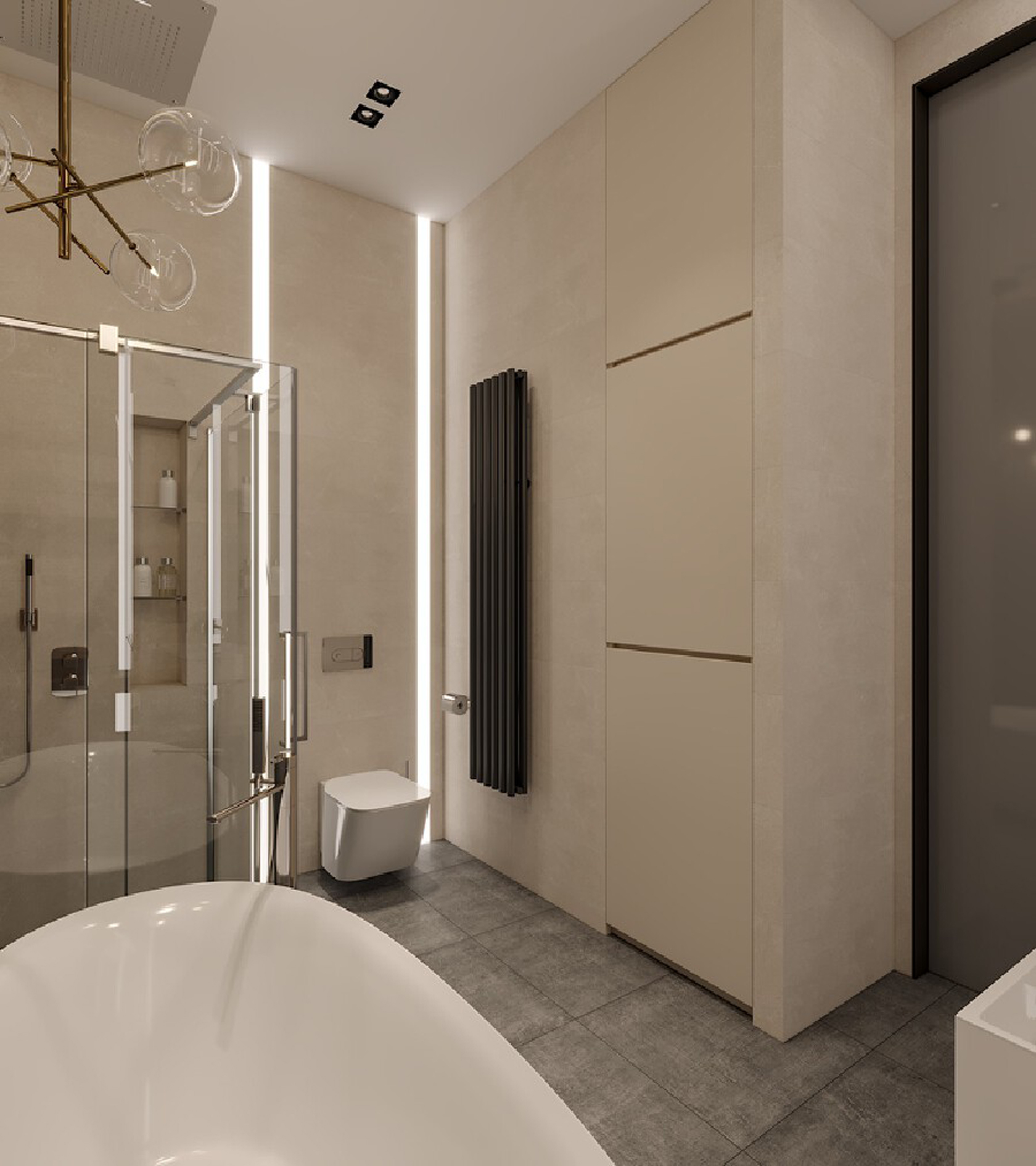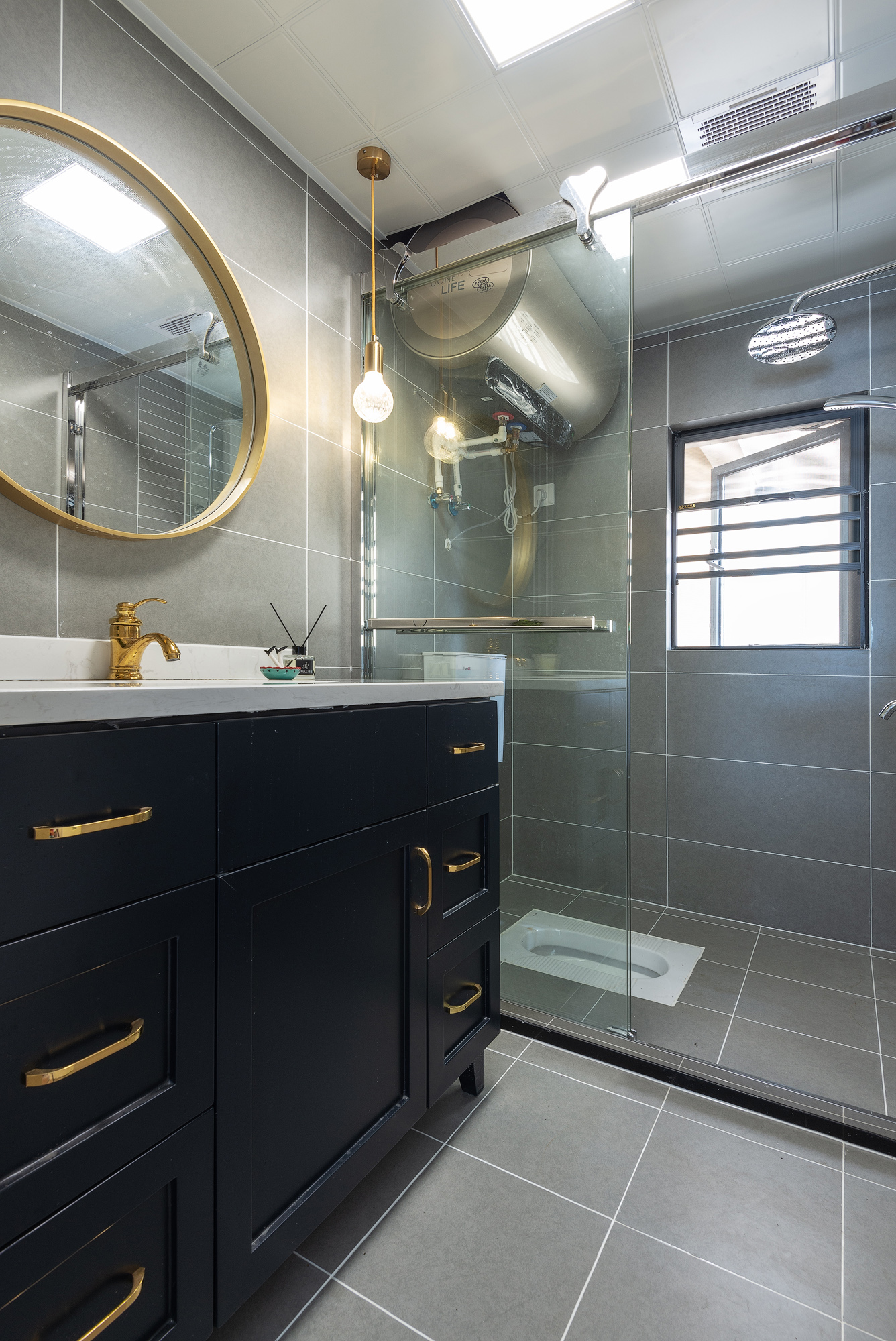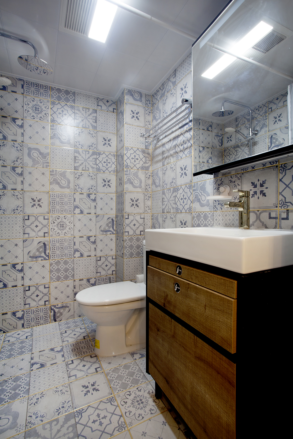 比较短小的卫生间或方形的卫生间,可能受到空间限制,并不适合并排式的摆放布局,更适合围合式或并排的摆放布局