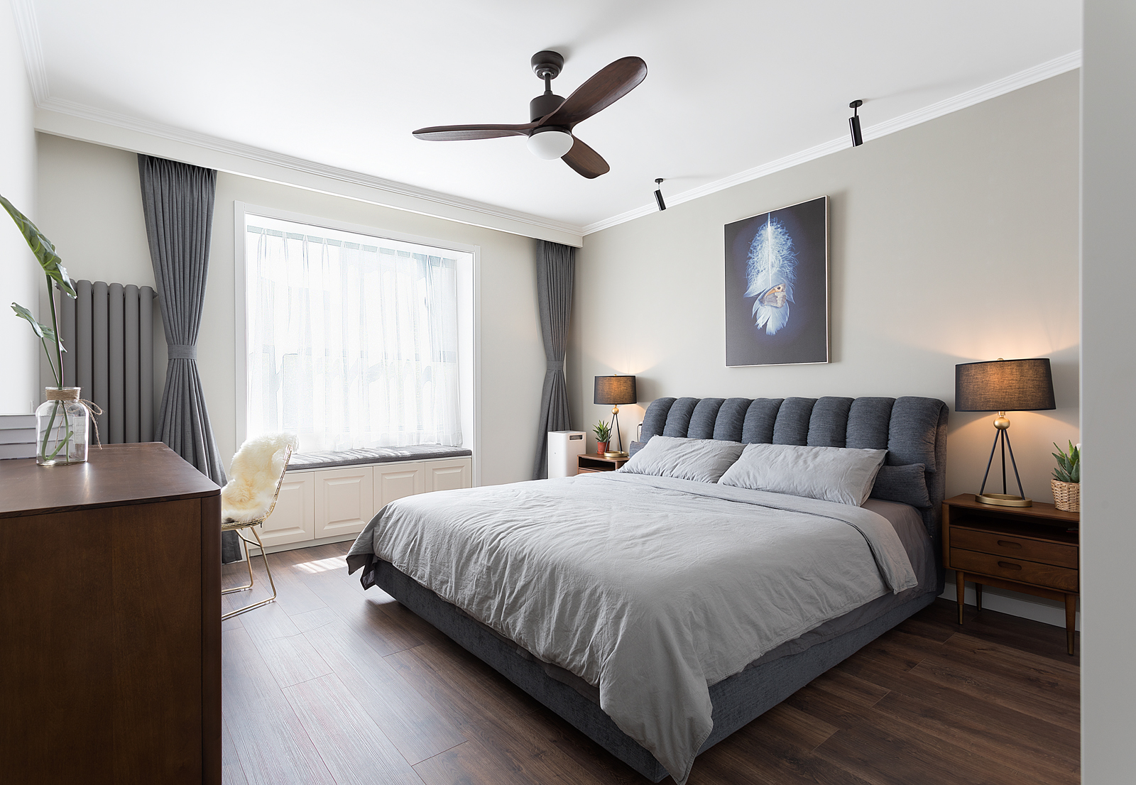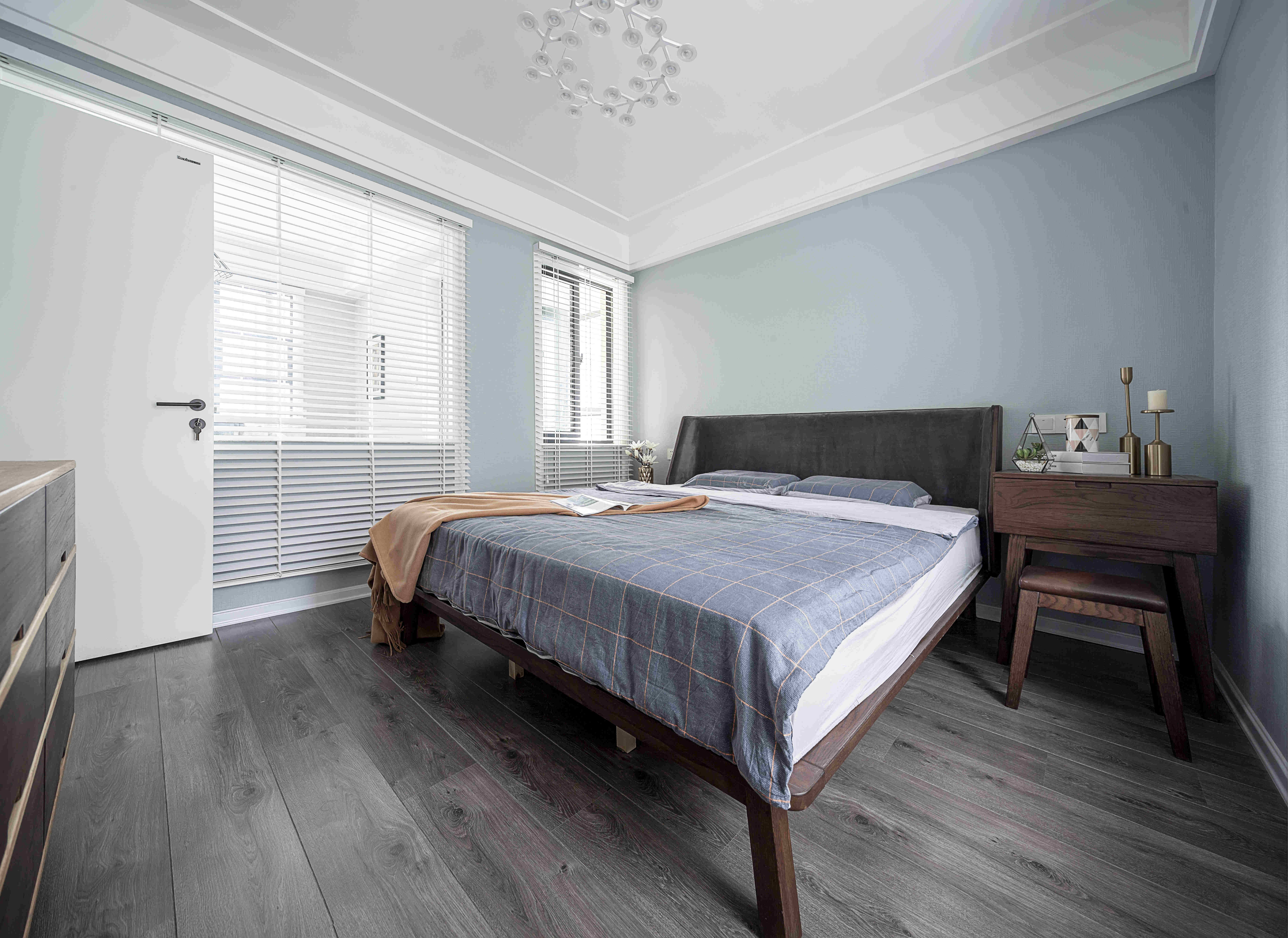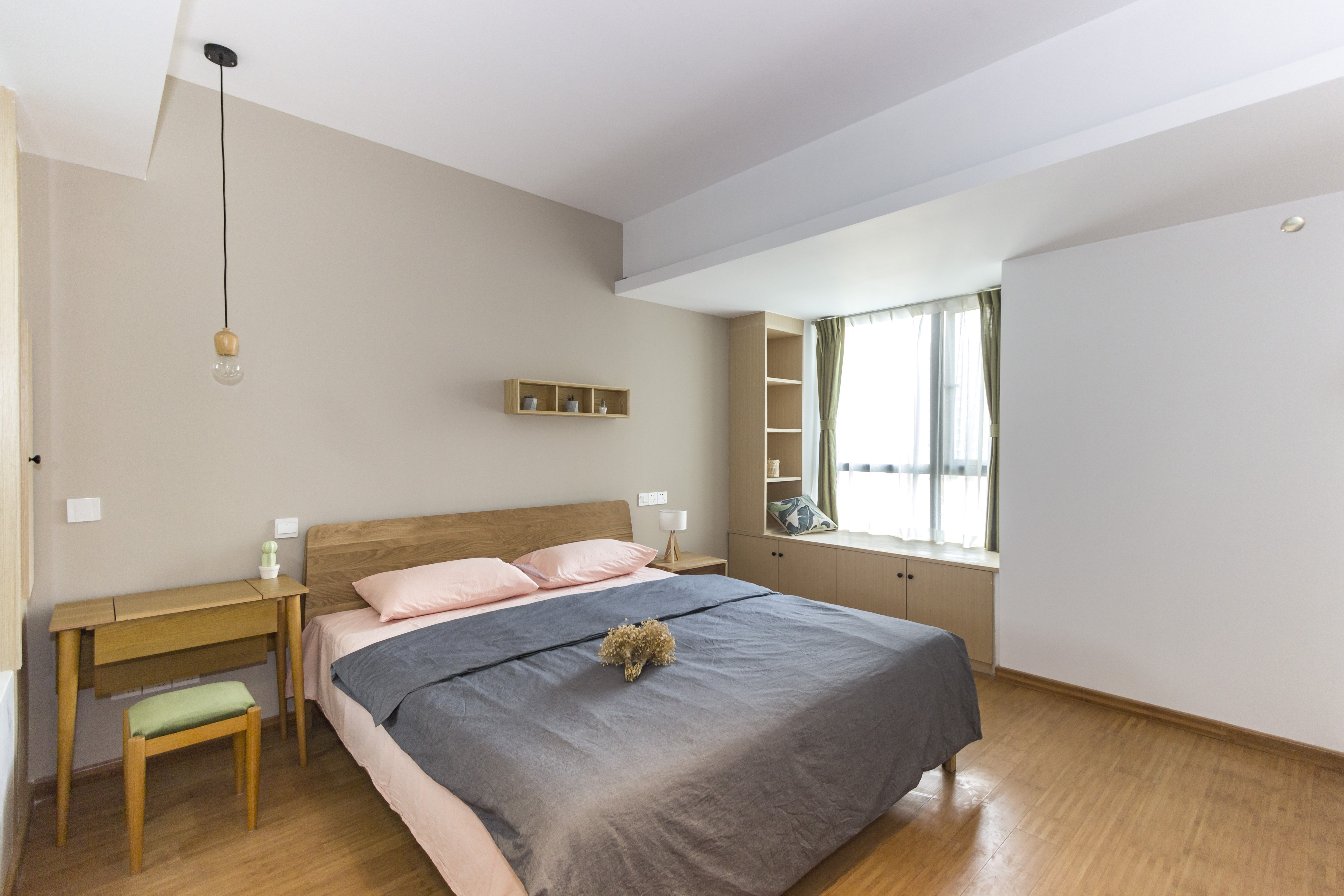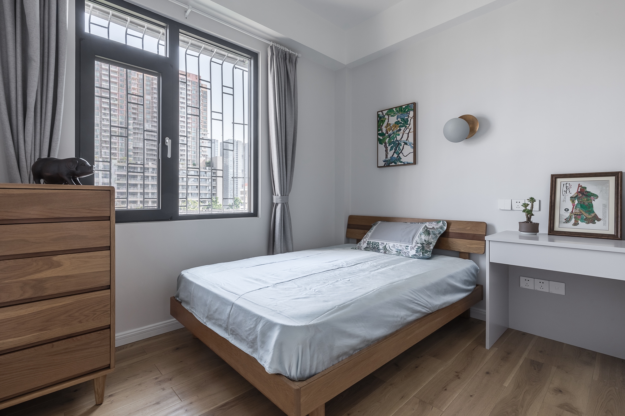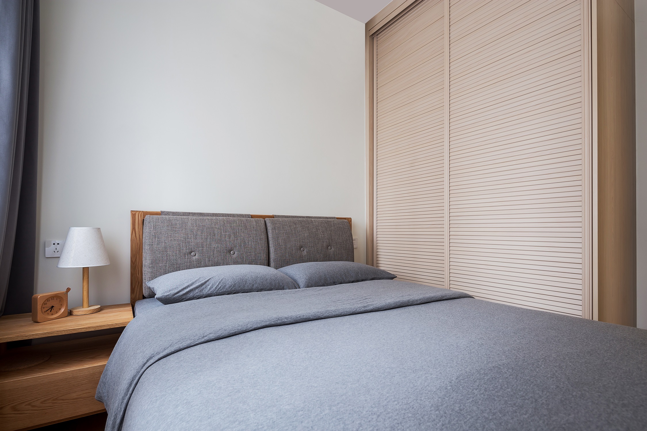卧室采用木质元素加灰白色的搭配,让整体风格既简约又大气,体现了屋主对极简风格的现代化追求。