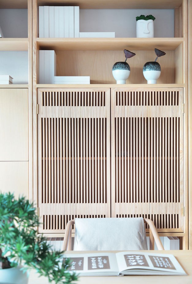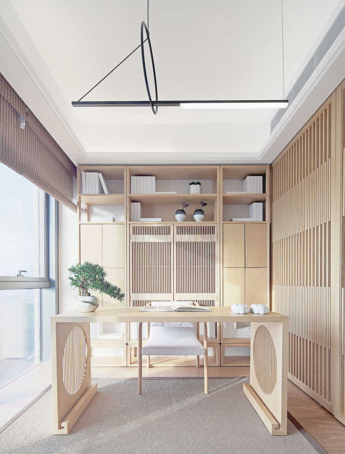 #装修记录#书房采用天然材质结合留白空间,以及独特的线条感书柜,让整个空间更加温润、简单和舒适。