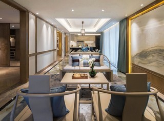 #家居美学# 270㎡ 大平层 身居繁华意向闲适。 微水泥的利落型格与低调主张,与木的原生暖调哲学,同频于纯粹的空间基调中,利落、静谧、清欢有余。/ 映空间设计