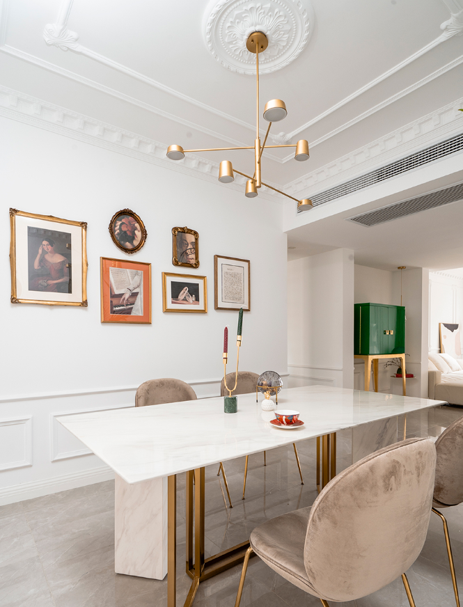 餐厅的区域采用了灯光带的设计,显得既明亮又宽敞,吃饭得氛围都更加温馨别致了。