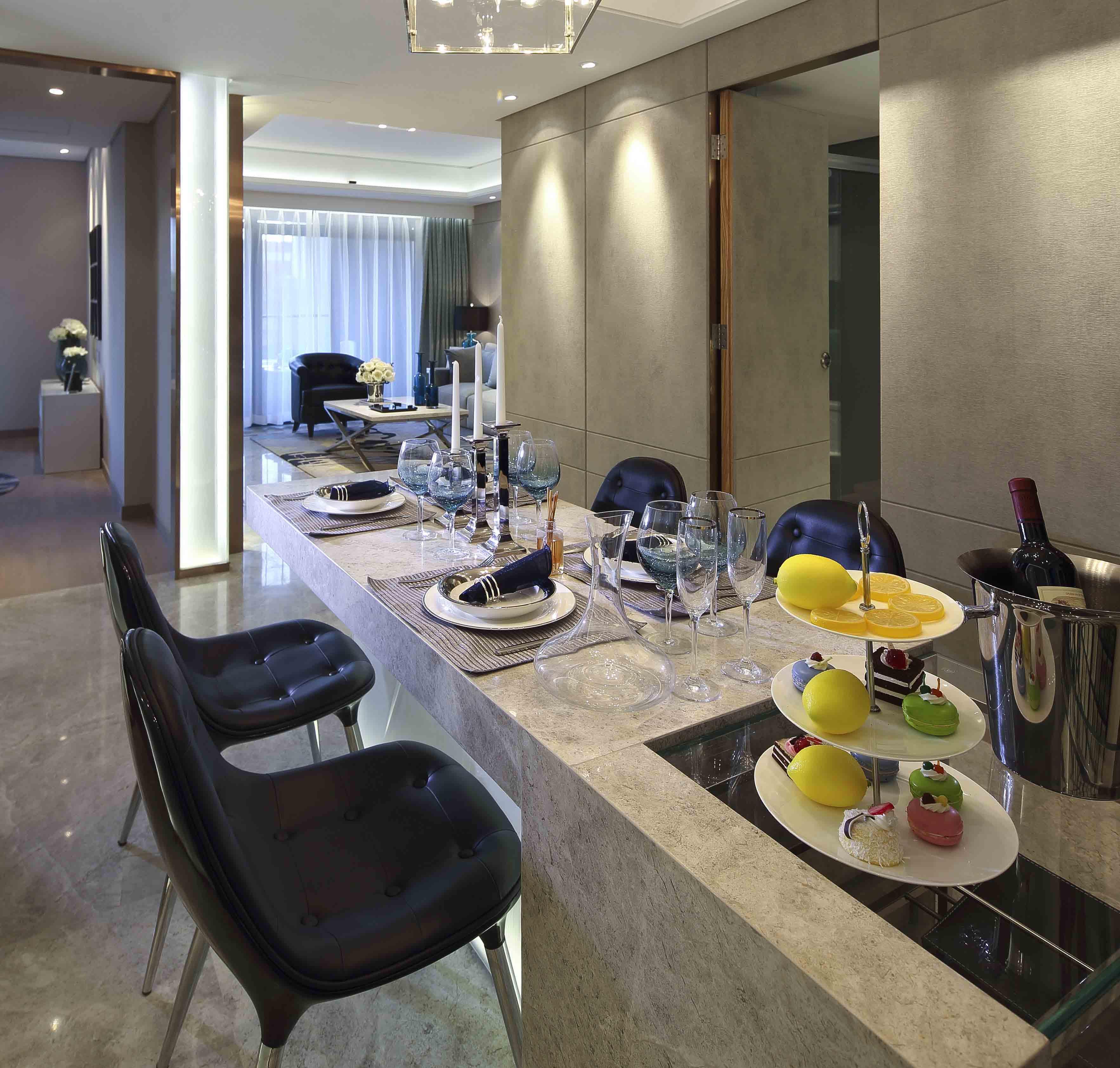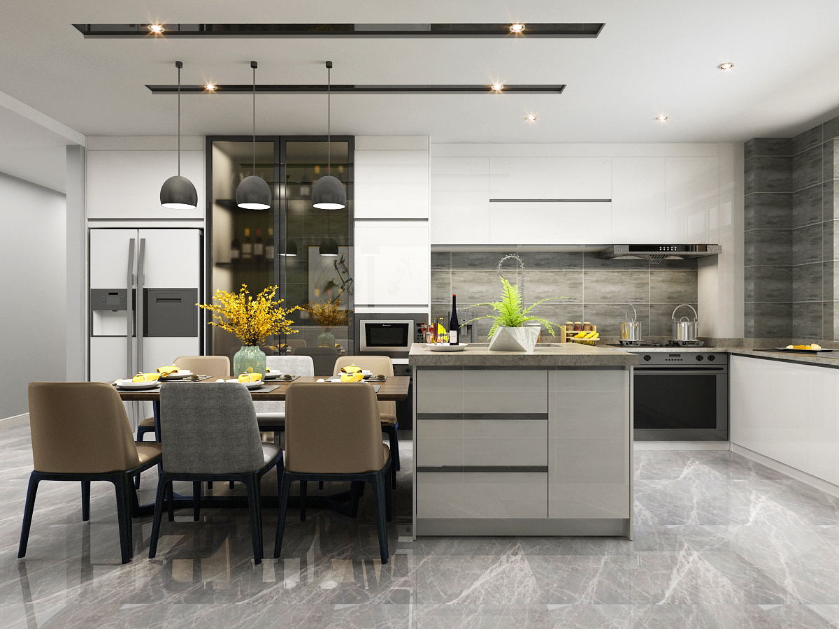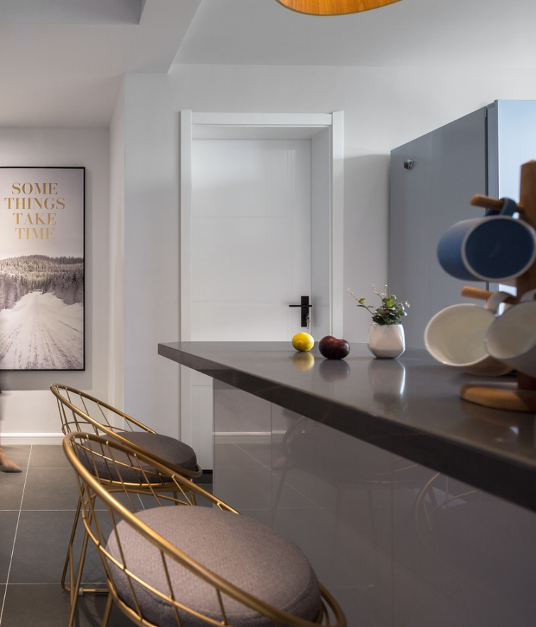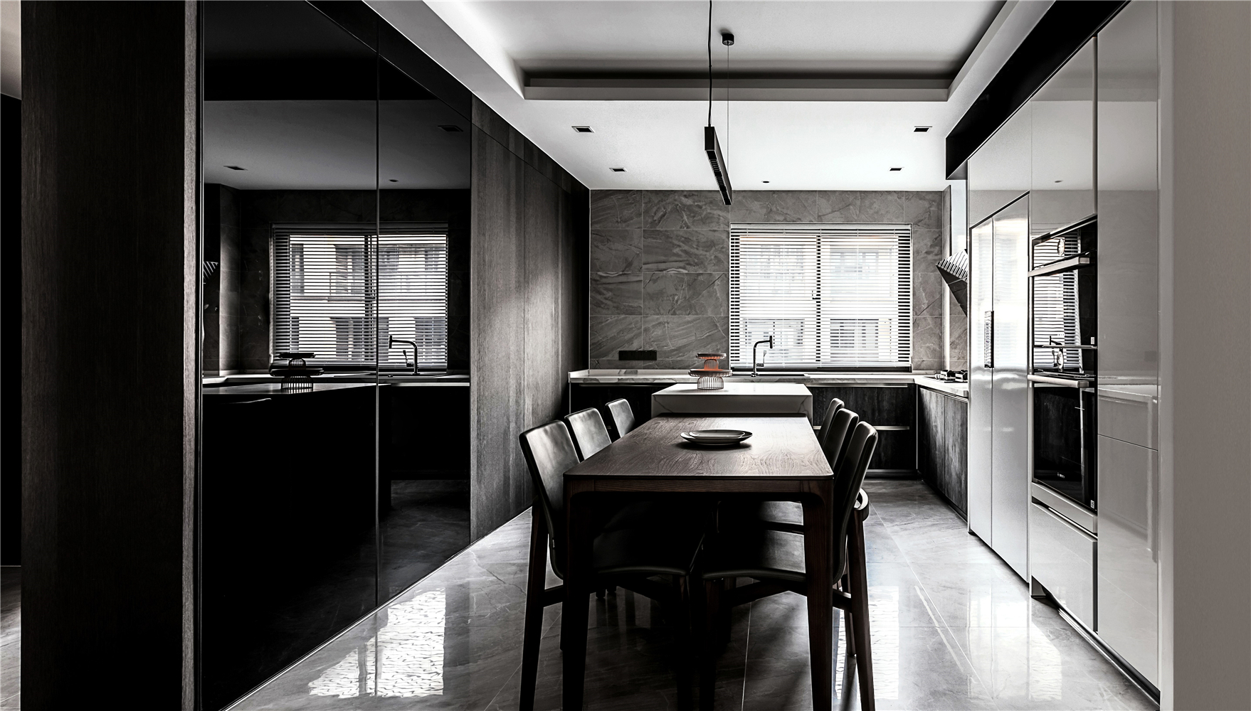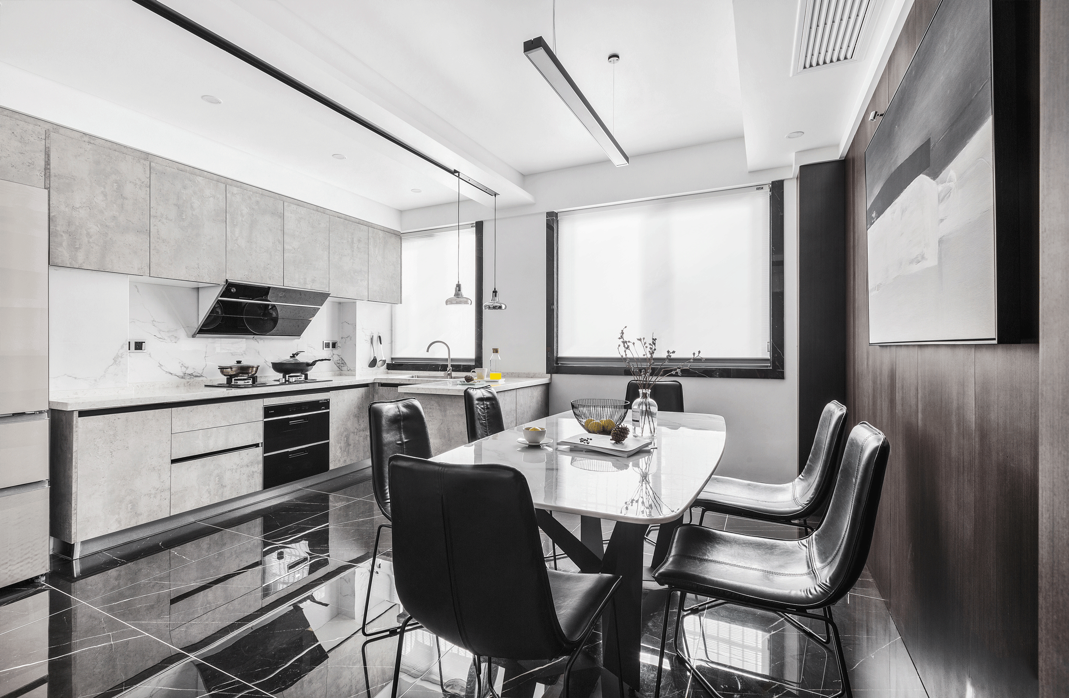 餐厅设计在厨房的一边,有利于形成与厨房之间直接的联动,做好菜品后方便端上餐桌,不必走很远。