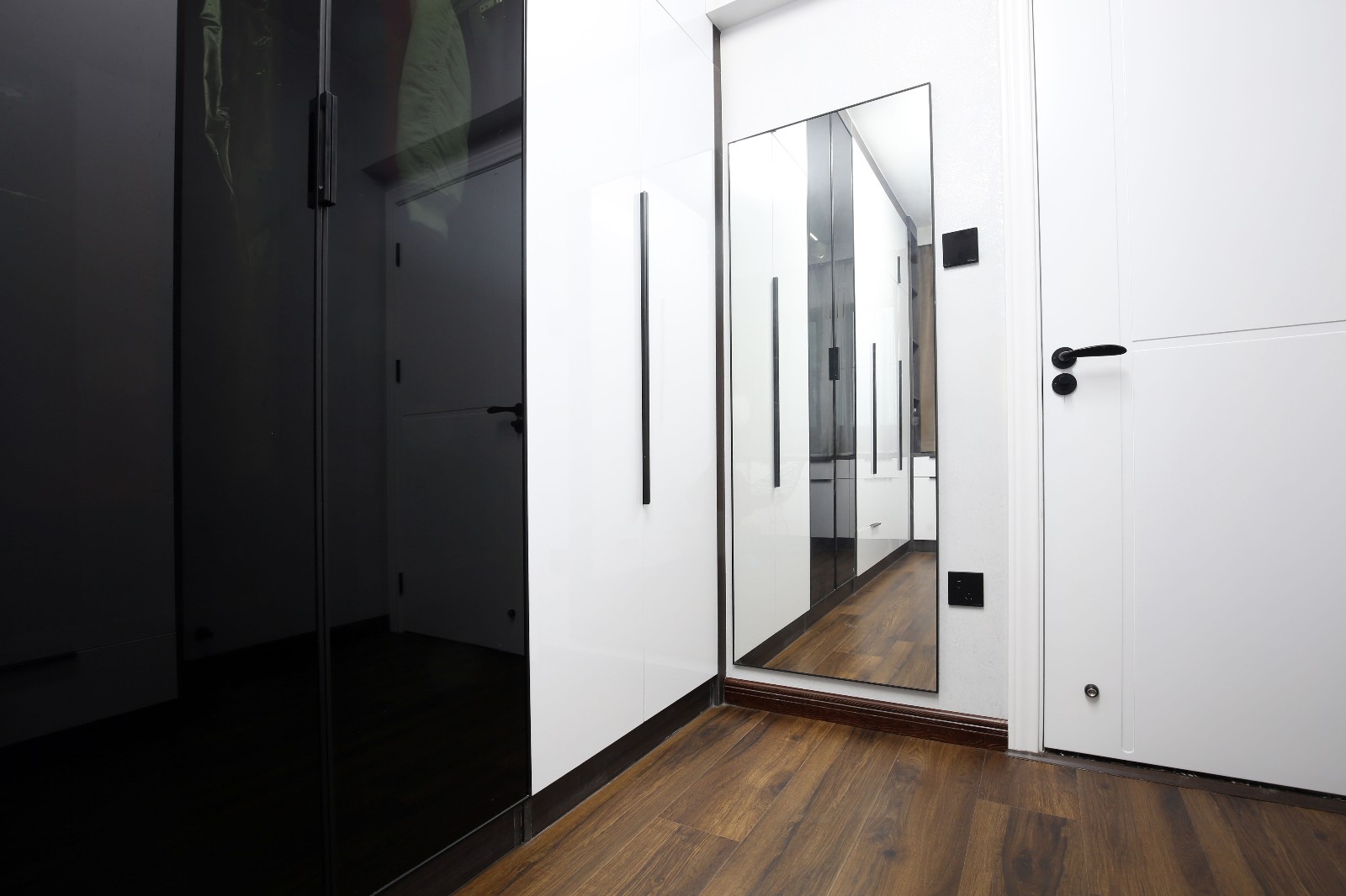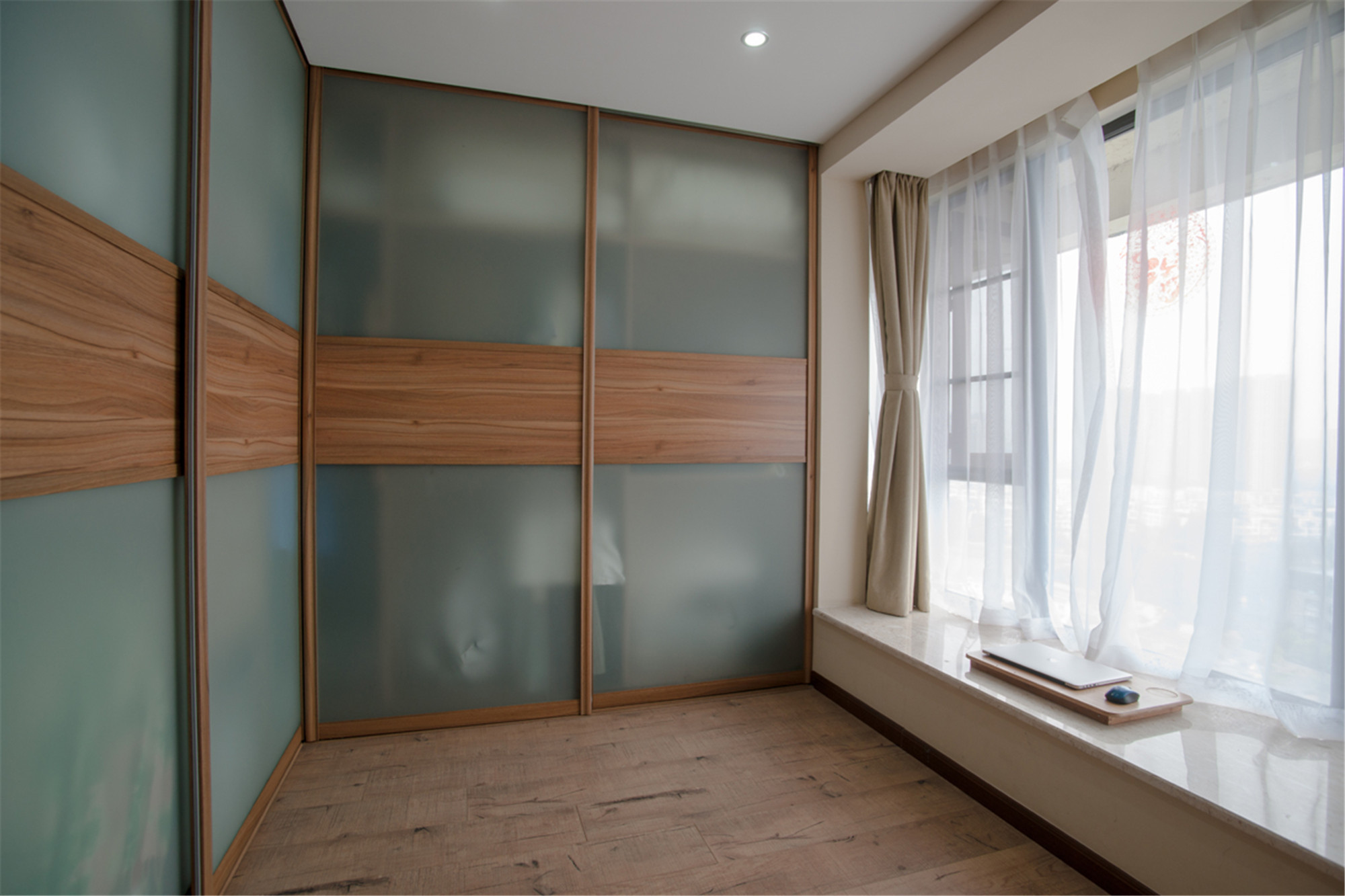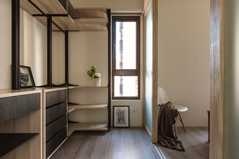 衣帽间采用意式极简和现代风格的复杂性交织叠合,衣帽间空间显得朦胧而慵懒,融洽且克制。