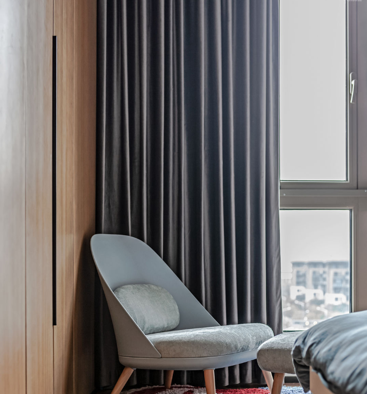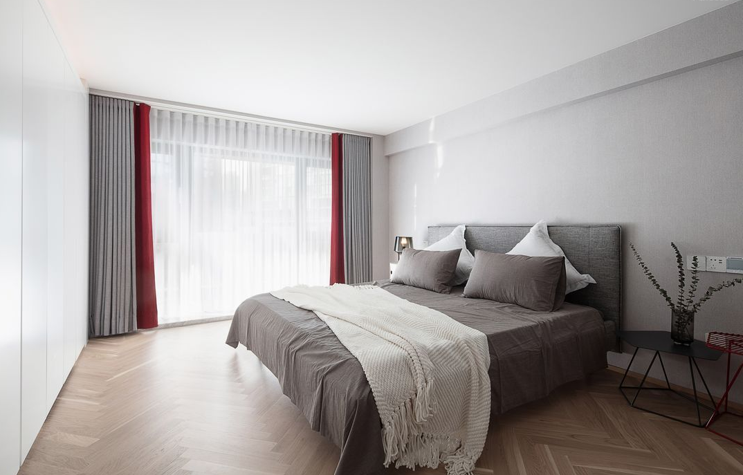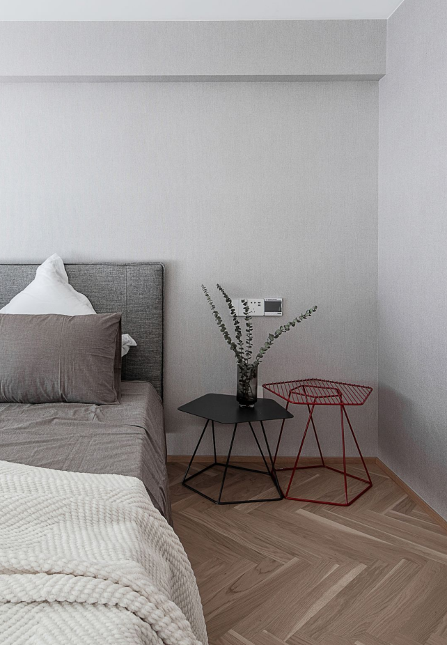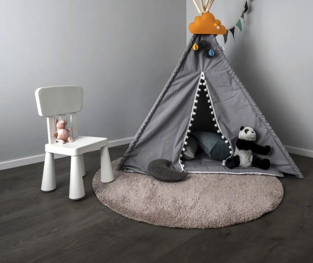 儿童房在保持整体灰色系简约风的调性基础上,采用了小帐篷设计,让孩子多了玩耍的空间,多了些许童趣与活泼轻快。