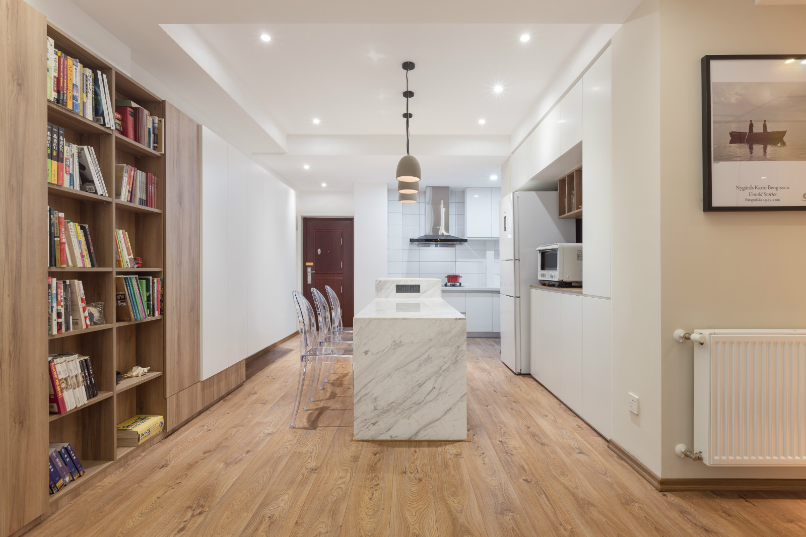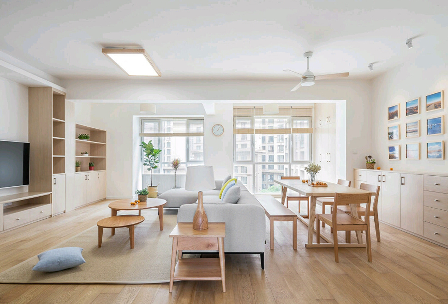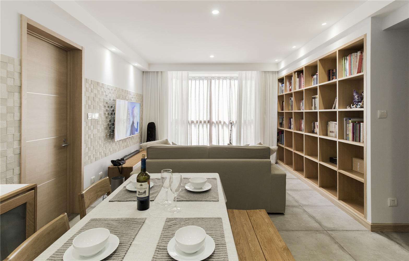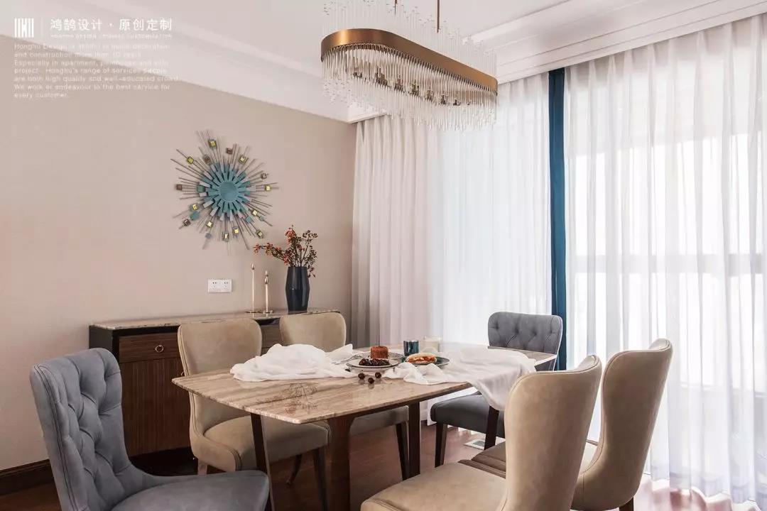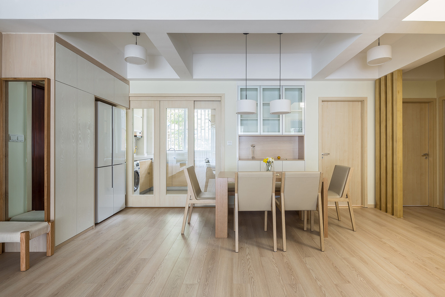 从餐厅看向客厅,窗帘、沙发皆为浅色系,木系材质搭配白色纱帘,浪漫又有整体感。餐桌椅子的搭配处处显心机,颜色融洽不突兀,简洁有格调。