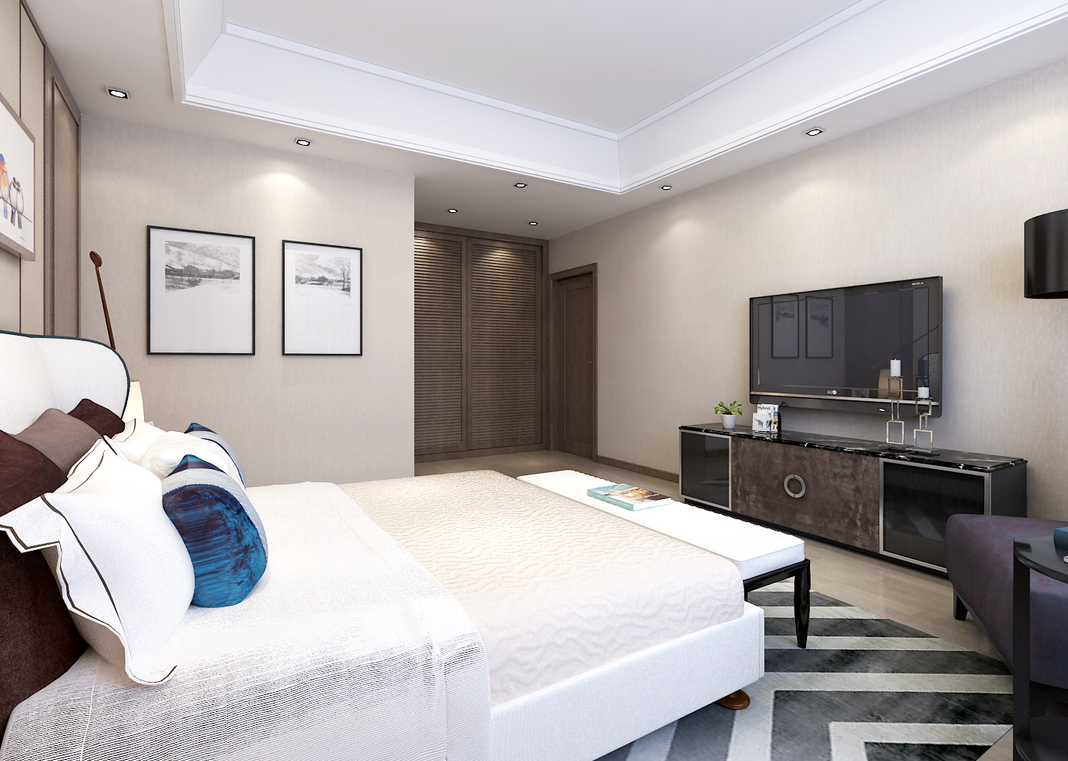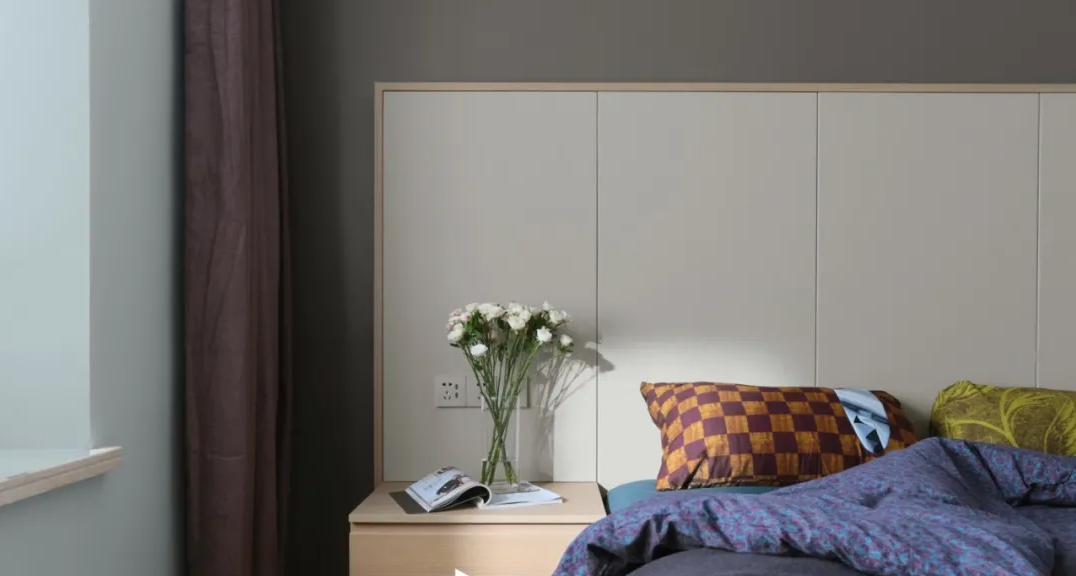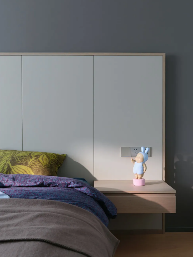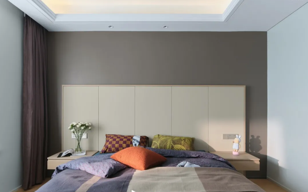 卧室采用了现代北欧简约风格,明快颜色的床品、窗帘布艺更显空间活泼整洁。