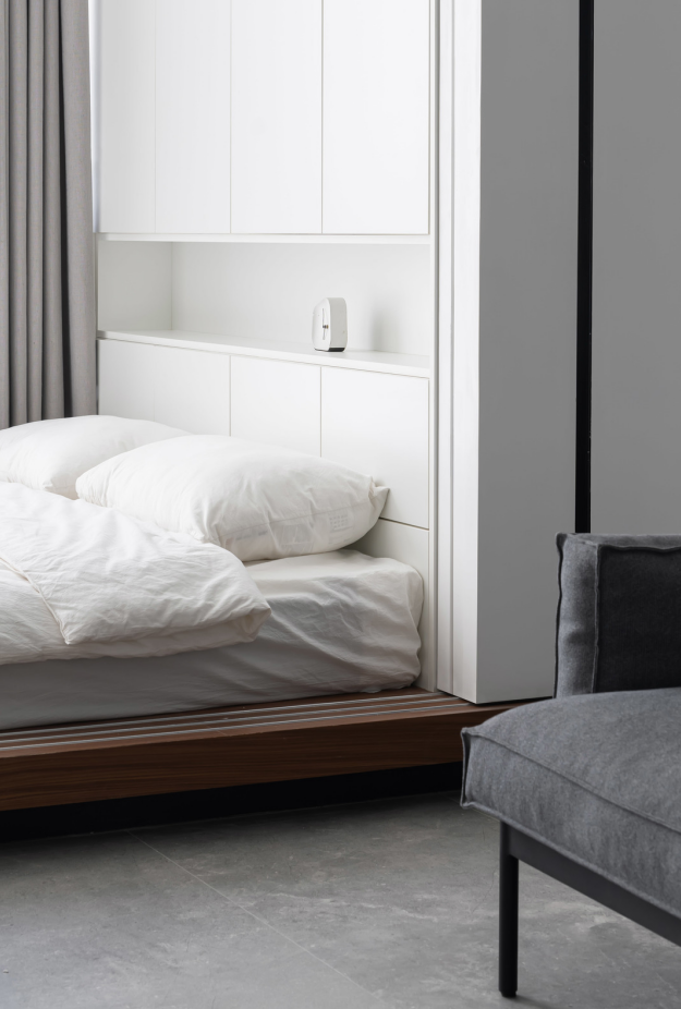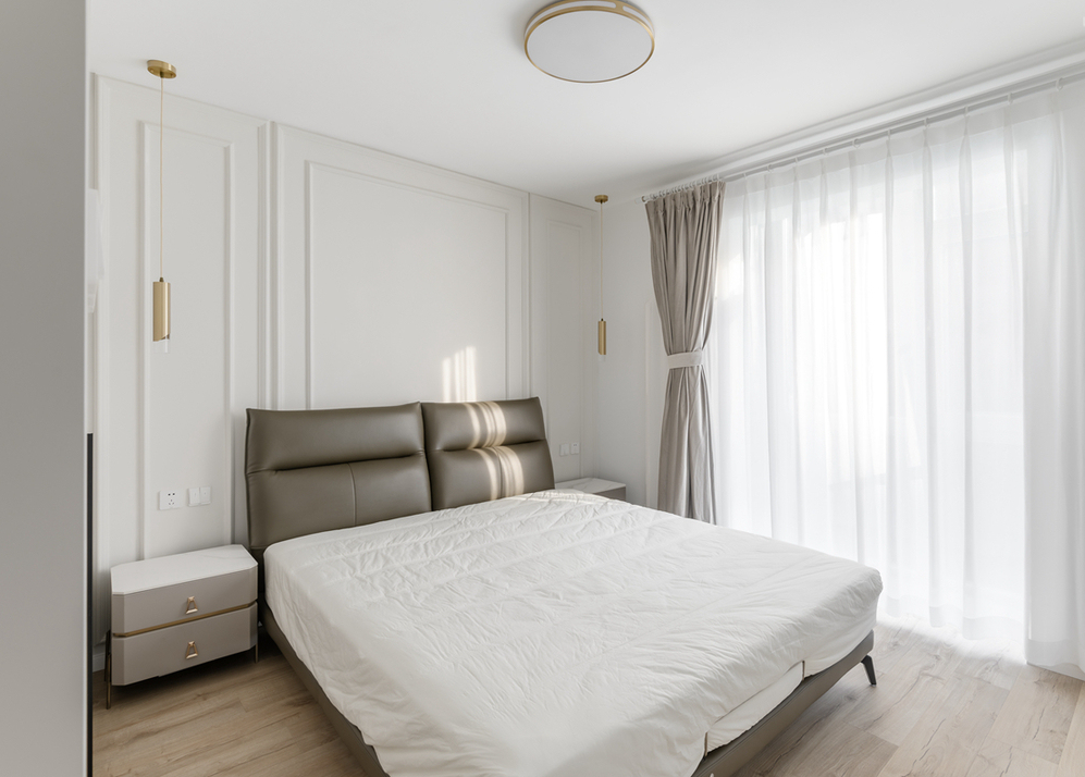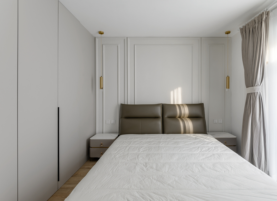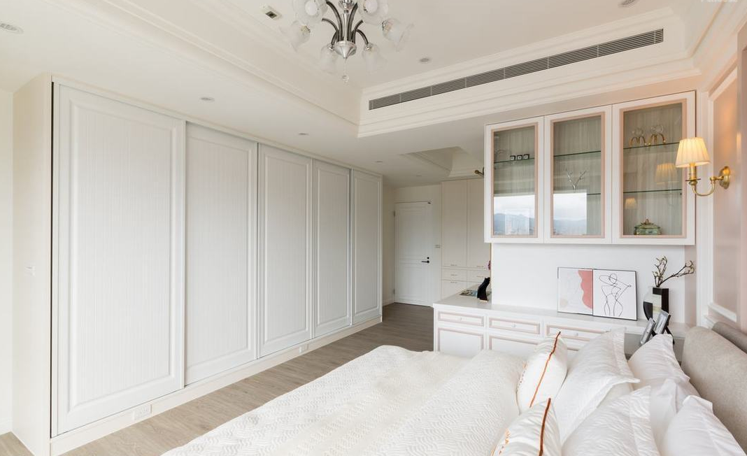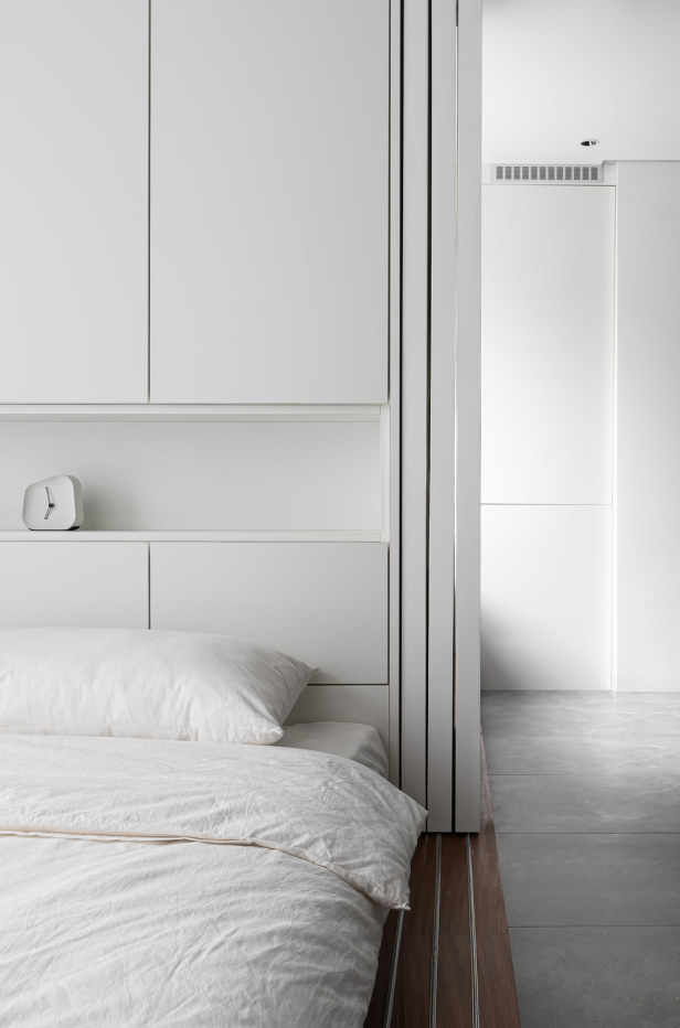 主卧在设计上大面积留白,白色的柜体增强收纳,营造出极简的美感,可以缓解压力,令人放松,安然入睡。
