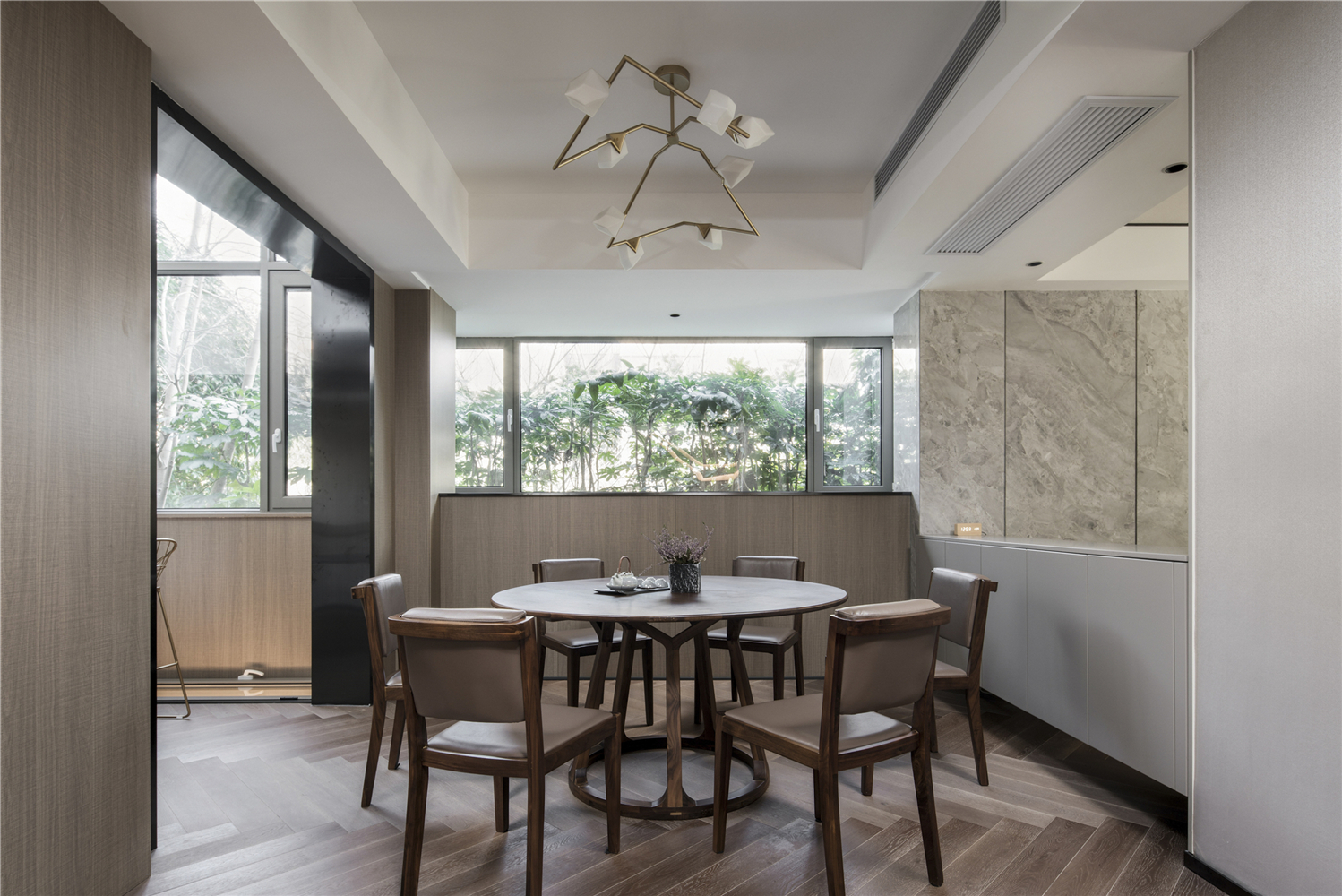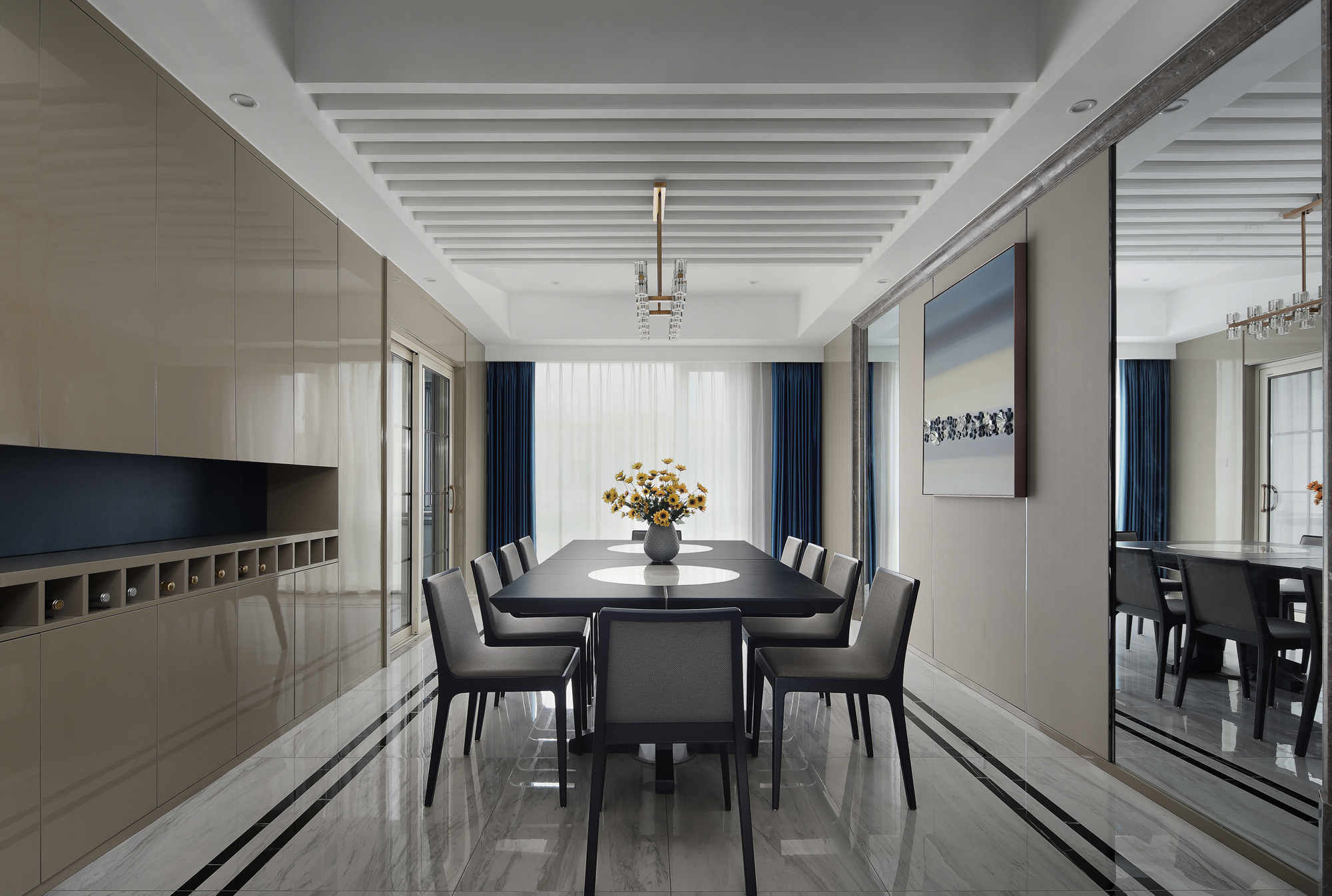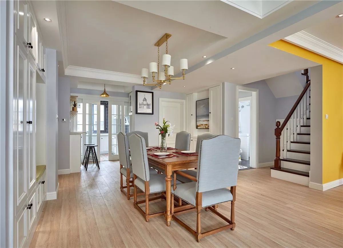 餐厅的风格主要是由餐桌、餐椅决定的,所以在软装设计前期,就应对餐桌、餐椅的风格定夺好。其中最容易冲突的是色彩、天花造型和墙面的软装饰。